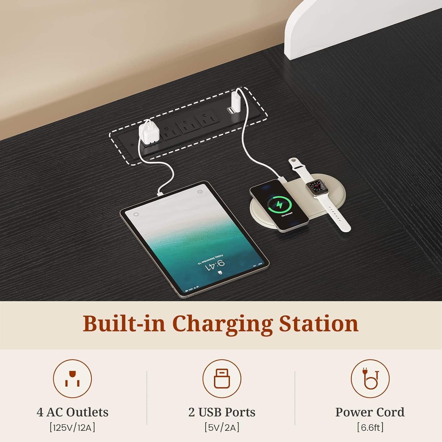 - 【Power Outlets & LED Light】The executive office desk is equipped with RGB LED lights, which feature over 60,000 colors and 29 flash patterns controlled via APP or keystrokes, with the colors changing to the rhythm of music on your phone. The farmhouse desk includes 4 outlets and 2 USB ports to power 6 devices simultaneously including phones, tablets, and laptops.